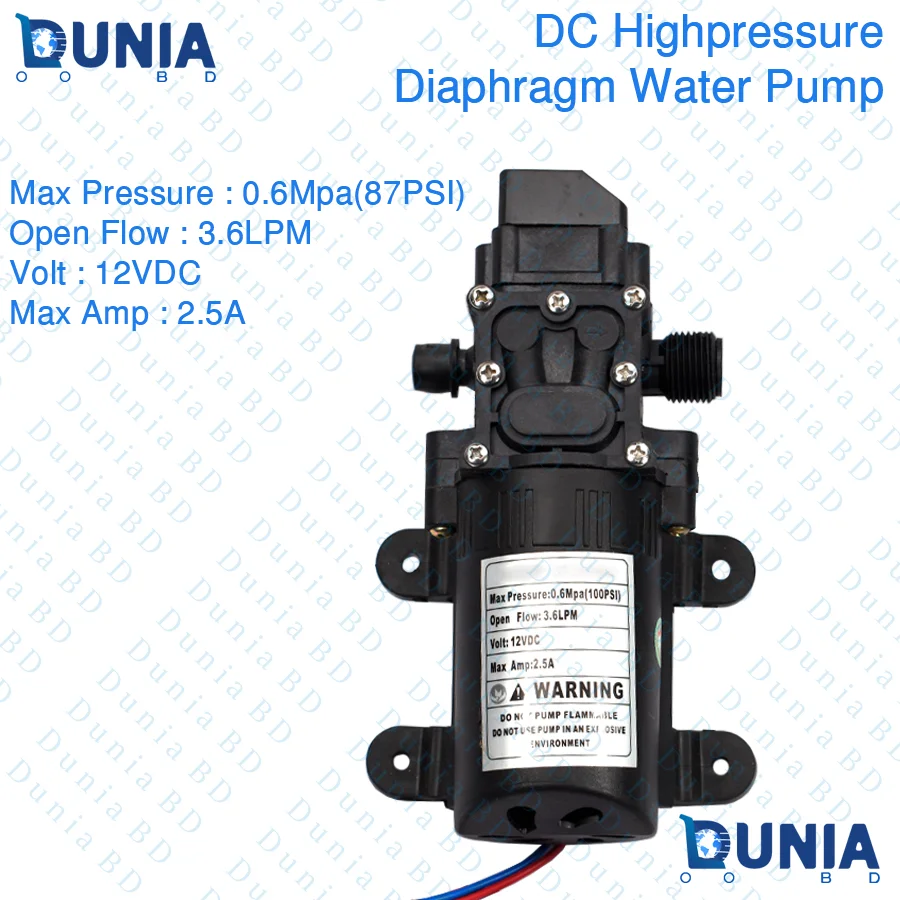 Diaphragm Water PUMP DC 12V 2.5A 87 PSI 3.6LPM Water Pump for Bike or Car Wash & Garden